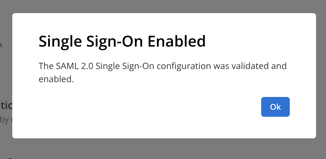 - Upon successful activation, SAML 2.0 Single Sign On will have the following options: