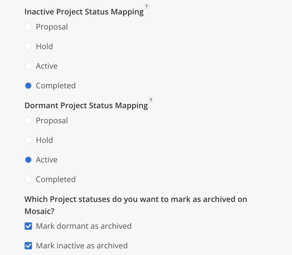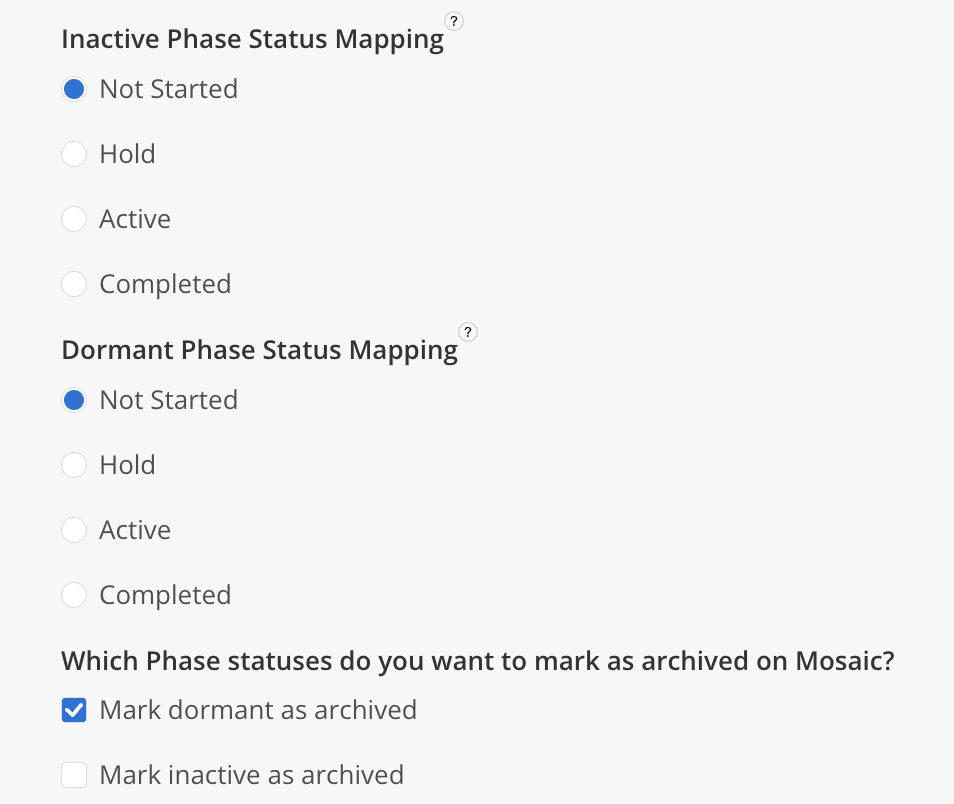 Which Phase statuses do you want to mark as archived on Mosaic?