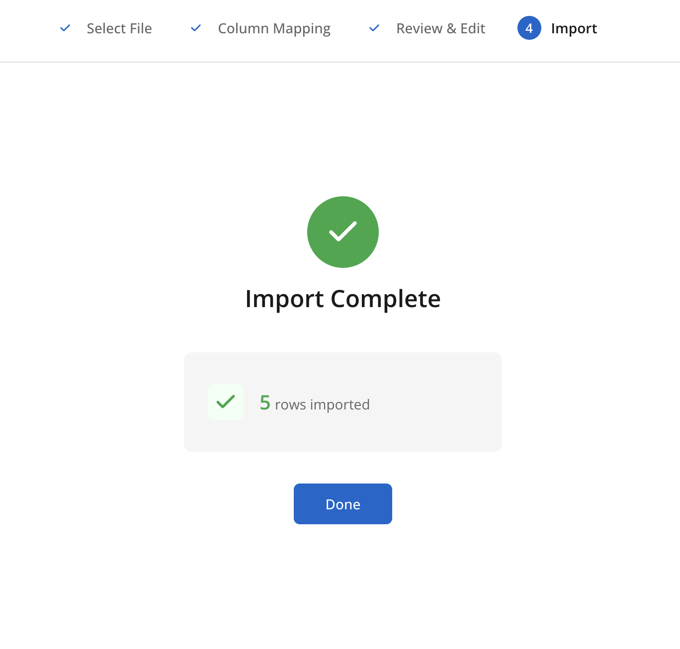 Confirm Importin the Import step to submit data.